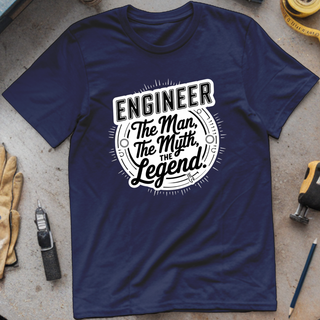 The Man, The Myth, The Legend is an engineering-inspired t-shirt for engineers and STEM enthusiasts who appreciate identity-driven humor. This design applies understated exaggeration to engineering culture, making it suitable for everyday wear or as a thoughtful, understated gift.