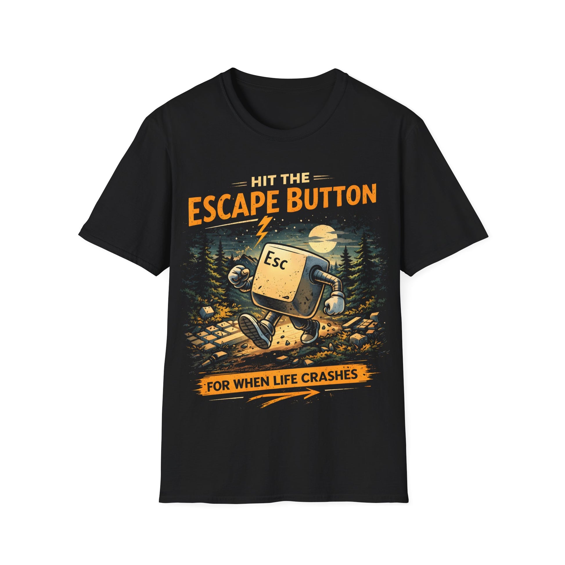 Escape Button is an engineering-inspired t-shirt for engineers, programmers, and STEM enthusiasts who appreciate clever keyboard humor. This design references the familiar keyboard key used to exit or cancel actions, making it suitable for everyday wear or as a fun gift.
